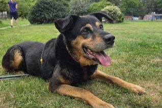 Demon to pies, ok. 12-letni dużej wielkości. Sięga mniej więcej do biodra, może ważyć ok. 40 kg. Jest trochę nieśmiały, boi się gwałtownych ruchów i głośnych dźwięków. Szukamy dla niego domu z ogrodem. Odnajdzie się też jako mieszkaniec ogrodu. W przyszłym domu nie powinno być też małych dzieci, gdyż Demon boi się hałasów i nadmiaru bodźców. Wymagane co najmniej 3 wizyty zapoznawcze i wizyta przedadopcyjna.