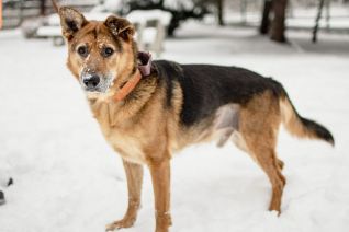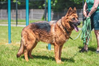 Puszek to około 13-letni pies w typie owczarka niemieckiego. Pomimo wieku nadal ma w sobie sporo werwy, wciąż uwielbia długie spacery. Ceni sobie towarzystwo ludzi - zarówno dużych, jak i małych. Niestety nie przepada za bliskością innych czworonogów, choć zdarzają się wyjątki. Bardzo ładnie chodzi na smyczy. W domu zachowuje czystość, potrafi także zostawać sam. Puszek niestety cierpi na alergię i dożywotnio musi być pod opieką dermatologa.