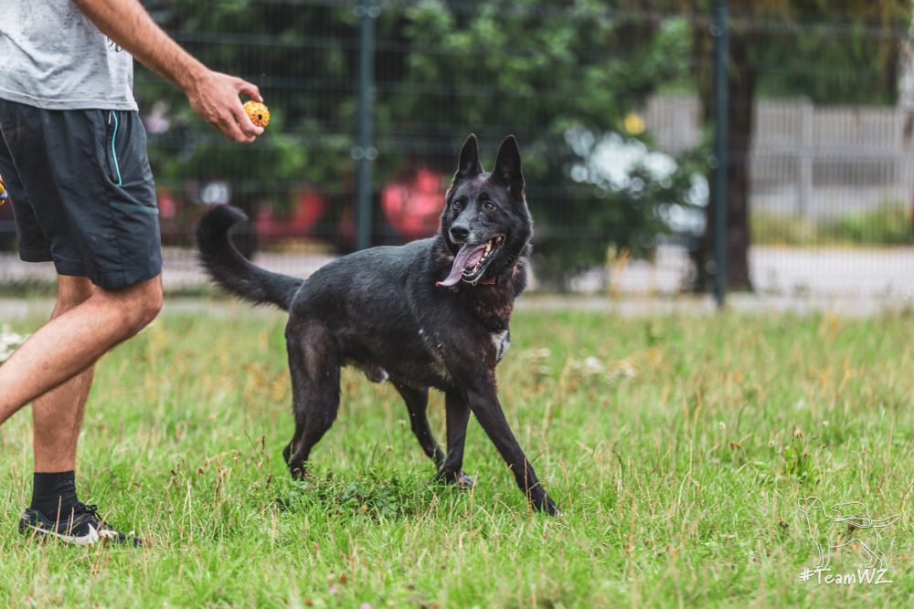 Jest bardzo inteligentny i szybko uczy się nowych komend. Na spacerach chodzi ładnie, nie ciągnie. Uwielbia zabawę z piłkami. Coraz lepiej idzie mu oddawanie piłek, chociaż dalej potrafi usilnie ją trzymać w pysku. Na spacerach potrafi iść z większością innych psów, ale nie nadaje się do mieszkania z nimi. Nie jest agresywny, lubi się głaskać. Niestety w momentach dla niego stresowych oraz gdy zaplącze się o smycz, rzuca się na nią próbując się na niej wyżyć.Nie chce on wtedy zrobić krzywdy człowiekowi, próbuje się tylko wyżyć na smyczy. Przyszły właściciel musi nauczyć się jak reagować w takich momentach, żeby uspokoić Koksa.